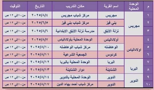 وأوضح محافظ أسيوط أن وحدة السكان بالمحافظة بقيادة الدكتورة نسرين محروس مدير الوحدة سوف تنفذ تدريبات في مجال ريادة الأعمال والشمول المالي بقري مركز صدفا (مجريس، بني فيز، نزلة الأبلق، أولاد الياس، الوعاضلة، كردوس، البربا، الشناينة، الدوير) خلال الفترة من (4 : 17) أغسطس الجاري