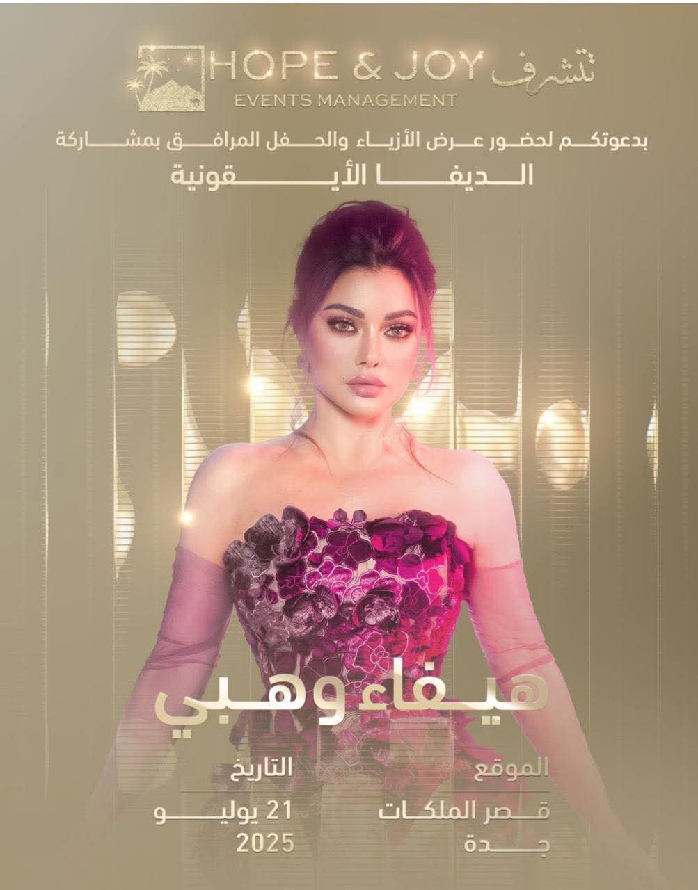 بإشراف وتنظيم Hope & Joy Events Management حدث استثنائي في عالم الموضة، حيث تُقيم مساء الاثنين 21 يوليو 2025 عرض أزياء فاخرا في "قصر الملكات" بجدة، بمشاركة نخبة من ألمع مصممي الأزياء من السعودية والوطن العربي والعالم.