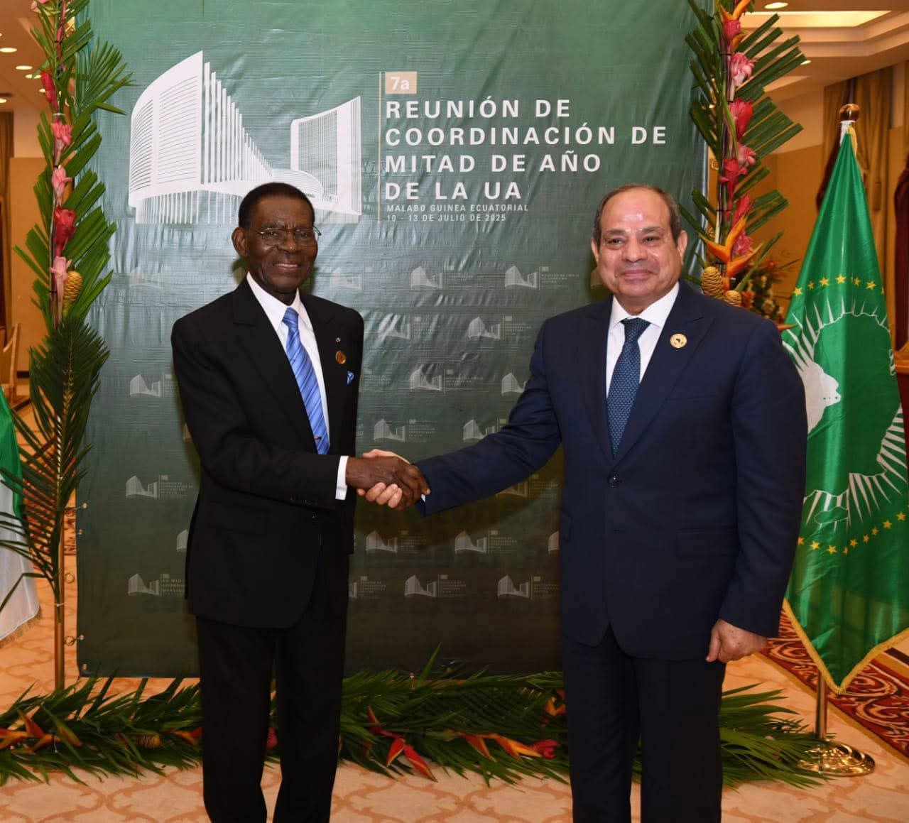 التقى السيد الرئيس عبد الفتاح السيسي اليوم بالسيد "تيودورو أوبيانج نجيما"، رئيس غينيا الإستوائية، وذلك على هامش مشاركة السيد الرئيس في أعمال الدورة السابعة لاجتماع القمة التنسيقي لمنتصف العام للاتحاد الأفريقي، والتي تعقد بمالابو، عاصمة غينيا الاستوائية.