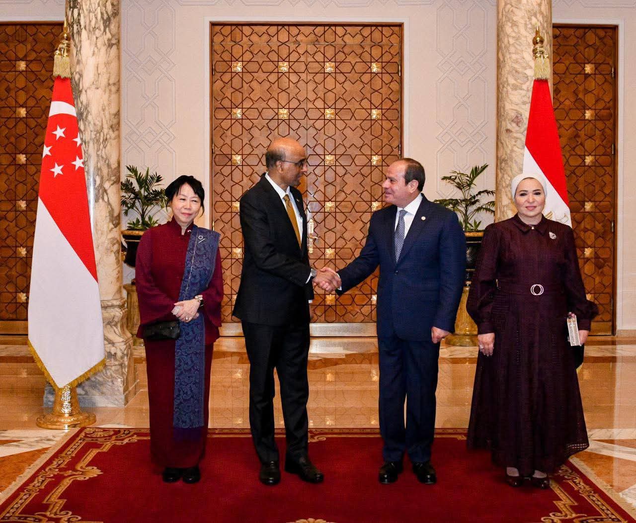 استقبل الرئيس " عبد الفتاح السيسي " والسيدة انتصار السيسي، قرينة السيد رئيس الجمهورية، اليوم بقصر الاتحادية، السيد/ ثارمان شانموجار أتنام رئيس جمهورية سنغافورة والسيدة جين يوميكو إتوجي قرينة سيادته، وذلك في إطار الزيارة الرسمية التي يقوم بها السيد الرئيس السنغافوري إلى جمهورية مصر العربية.